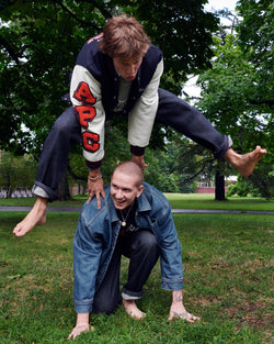 Marc Jacobs and A.P.C. debut a 26-piece capsule collection that celebrates the brands’ shared 1980s roots and distinct cultural perspectives. The collaboration reinterprets collegiate style with layered fabrics, precise detailing, and archival references from Paris and New York. Rooted in a friendship that began in the 1990s, this collaboration reflects the natural connection between Marc Jacobs and Jean Touitou and the creative worlds they have each built.